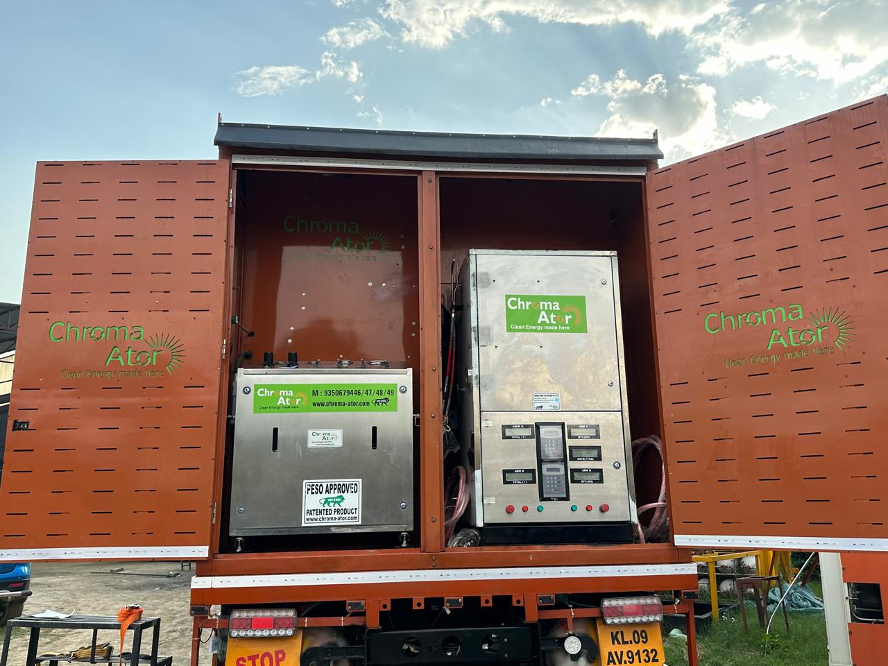 Chroma-ator has created innovative solutions such as the cng mobile refueling units, which can supply CNG/LNG in areas without gas pipelines. Our patented composite integrated dispensing unit is the most secure option, capable of dispensing approximately 1750 kgs of gas in one filling. Our pioneering technology operates without electricity and combines storage, booster and dispenser into one integrated product. This offering complements our cng engine and generator business. At present these CDUs are available in 1*1 mtr. Footprint AND 3*1 mtr. Footprint